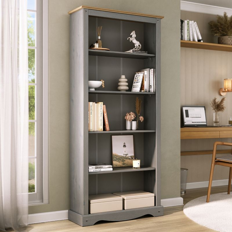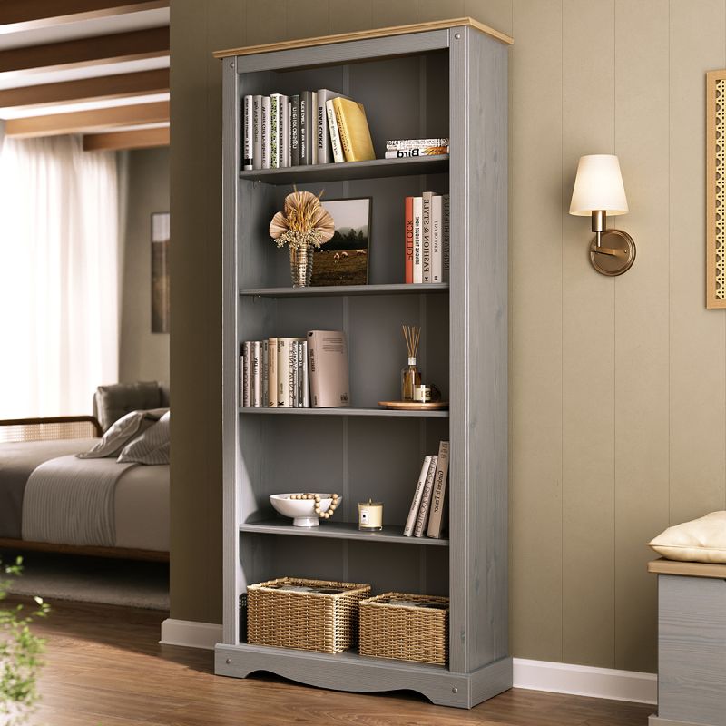 - Acabamento: Cera cor cinza lavado com veios e nós aparentes | Tampo: Cera cor marrom antique.