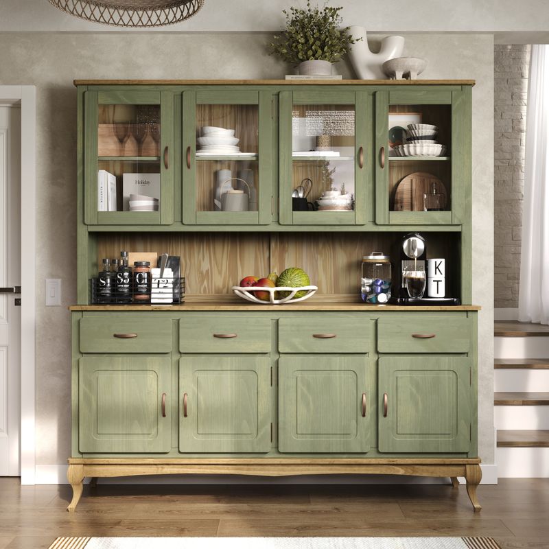 Aparadores e BalcõesOratório em Madeira Maciça com 4 Portas de Vidro Verde Oliva
